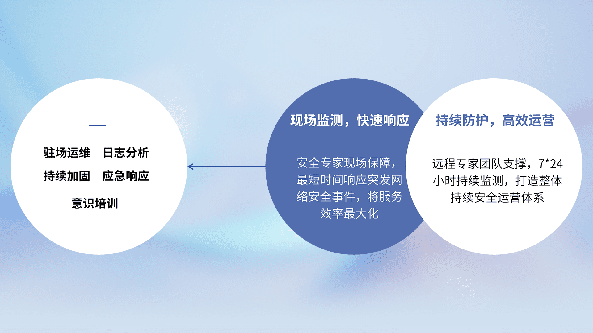针对客户行业特性,,提供专属的一站式安全管理服务,,帮助客户全面感知网络空间威胁,,通过安全专家的线上、、、线下防护支持,,,实现风险闭环,,,,将安全保障常态化,,,为客户打造常态化安全运维运营服务。。
